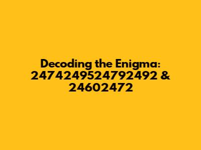 Could there be a relationship between 2474249524792492 and 24602472? It's possible, although without more information, it's difficult to say for sure. Here are a few scenarios where these numbers might be connected: