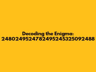 When we see a number sequence, it's natural to wonder if it has a mathematical basis. Could our sequence, 2480249524782495245325092488, be derived from a mathematical formula, a constant, or a specific algorithm? One approach is to consider it as a series of coordinates or data points. We could plot these points on a graph and see if they form any recognizable shape or pattern. Alternatively, we might try applying various mathematical operations to the sequence to see if we can generate a more meaningful result. For example, we could calculate the differences between consecutive digits or apply modular arithmetic to reduce the numbers to a smaller range. Another possibility is that the sequence is related to a well-known mathematical constant like pi (π) or the golden ratio (φ). These constants have infinite decimal expansions, and it's conceivable that our sequence is a fragment of one of them. To test this hypothesis, we could search for the sequence within the known digits of these constants. Of course, it's also possible that the sequence is generated by a more complex algorithm or function. In this case, we might need to use more sophisticated techniques like Fourier analysis or machine learning to identify the underlying pattern. Exploring the mathematical possibilities can be a challenging but rewarding endeavor. It requires a combination of intuition, creativity, and technical skill. However, if we can uncover a mathematical basis for the sequence, we'll have gained a significant insight into its nature and origin.
