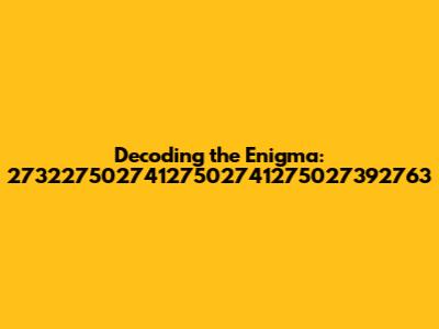 When faced with a string of numbers like 27322750274127502741275027392763, our minds naturally try to find patterns, connections, or some sort of logical structure. One approach is to consider it as a series of codes or identifiers. Could it be related to a product number, a serial number, or even a hash code of some kind? In the realm of technology, long sequences of numbers and characters are often used to uniquely identify files, data sets, or even pieces of hardware. The sheer length of this sequence suggests it might be a complex identifier used within a specific system or database. Another interpretation could involve breaking the number down into smaller segments and looking for known codes or patterns within those segments. For example, are there any recognizable date formats, geographical coordinates, or even telephone number prefixes embedded within the larger string? This segmentation approach can sometimes reveal hidden meanings or point to the origin or purpose of the number. Also, think about whether this number could be related to financial transactions. Banks and financial institutions use long strings of numbers for account numbers, transaction IDs, and other identifying purposes. It is possible that this sequence, or a portion of it, could be tied to a financial record somewhere. However, without additional context, it remains difficult to say for sure. Let's not forget the possibility that it's completely random. Sometimes, numbers are just numbers, generated without any specific intention or meaning. While it's less exciting to consider this possibility, it's important to acknowledge that not every sequence has a hidden purpose. The challenge, then, is to explore these different avenues and see if any lead to a plausible explanation. Keep an open mind and embrace the ambiguity, guys!