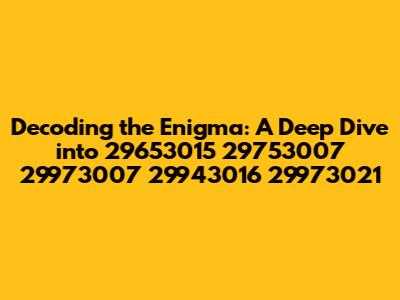 Decoding The Enigma: A Deep Dive Into 29653015 29753007 29973007 29943016 29973021