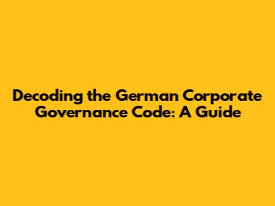 What Exactly is the German Corporate Governance Code?