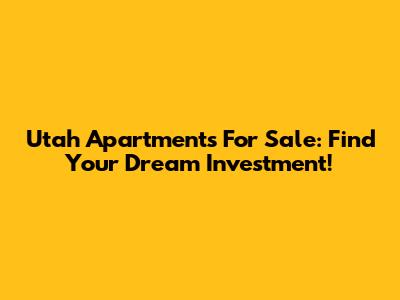 Utah Apartments For Sale: Find Your Dream Investment!