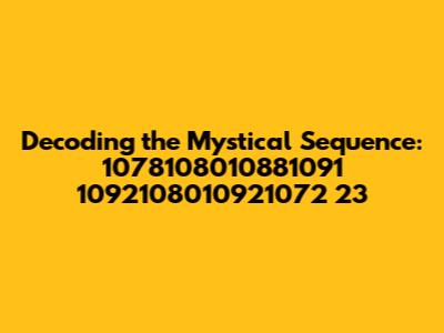 Hey there, curious minds! Ever stumbled upon a sequence of numbers that just... grabs your attention? Maybe it's a random string of digits that keeps popping up, or perhaps it's a series you've seen in a dream or meditation. Today, we're diving deep into the intriguing numerical sequence: 1078108010881091 1092108010921072 23. This article will explore the potential meanings and significance behind this sequence, offering different perspectives and encouraging you to connect with the energies it might represent. Let's get started, shall we?