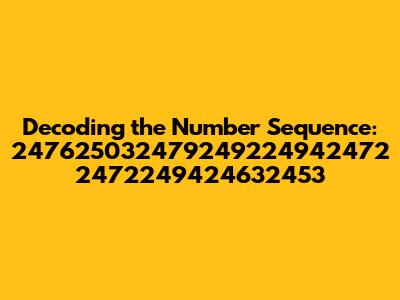 Ever stumbled upon a random string of numbers and felt like you were staring at an alien code? Well, today, we're diving deep into one such enigma: 247625032479249224942472 2472249424632453. It might seem like gibberish at first glance, but let's explore some potential ways to decode this numerical sequence. Maybe it holds a secret message, a hidden pattern, or perhaps it's just a random set of digits. Whatever it is, we're going to break it down and see what we can find. Our mission is to unravel the mystery behind this numerical puzzle and make sense of the seemingly senseless. So buckle up, grab your thinking caps, and let's embark on this numerical adventure together. We'll explore various angles, from simple arithmetic patterns to more complex cryptographic possibilities. By the end of this article, you'll have a better understanding of how to approach and decode such sequences, and who knows, maybe we'll even crack the code of this particular one!