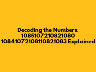 Hey there, data enthusiasts! Ever stumbled upon a string of numbers that just seems to hang in the air, begging for an explanation? Well, today, we're diving headfirst into the intriguing world of the numbers 1085107210821080 10841072108110821083. These aren't your everyday numerical sequences; they're like secret codes waiting to be cracked. Let's embark on a journey to uncover their meaning, understand their significance, and explore the context in which they might pop up. Prepare to have your curiosity piqued, because we're about to decode the mystery behind these enigmatic digits!
