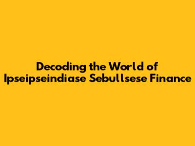 Hey there, finance enthusiasts! Ever heard of ipseipseindiase sebullsese finance? It's a term that might sound a bit like financial jargon, but don't worry, we're going to break it down and make it easy to understand. In this article, we'll dive deep into what this concept entails, its significance, and why it's becoming a hot topic in the financial world. Get ready to explore the intricacies of ipseipseindiase sebullsese finance in a way that's both informative and engaging.
