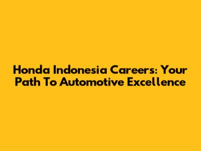 Honda Indonesia Careers: Your Path To Automotive Excellence