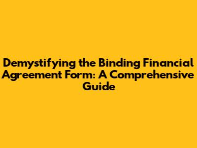Hey guys! Ever heard of a Binding Financial Agreement (BFA)? Maybe you've stumbled upon the term while looking into prenuptial agreements, or perhaps you're already in the thick of a separation or divorce. Well, buckle up, because we're about to dive deep into the world of BFAs! This guide will break down everything you need to know, from the basics to the nitty-gritty details, so you can navigate this complex area with confidence. Think of it as your go-to resource for understanding and making informed decisions about this crucial legal document.