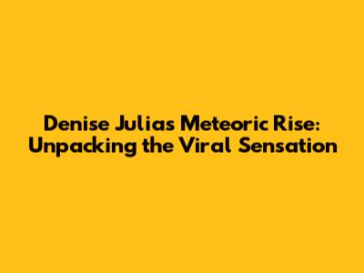 Hey everyone! Let's dive into the fascinating world of online fame and the story of Denise Julia, who has become a total viral sensation! We're talking about a name that's been buzzing all over social media, and if you're like most people, you're probably wondering, "Who is this Denise Julia?" and "What's all the fuss about?" Well, buckle up, because we're about to unpack everything! From her initial spark of recognition to her current widespread popularity, we'll explore the key factors behind her viral success. This isn't just about fleeting trends, guys; it's about understanding the power of the internet, the importance of authenticity, and how one person can capture the hearts and attention of millions.