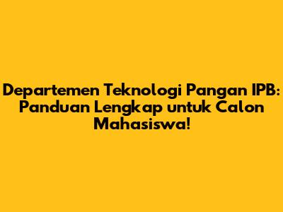 Hei guys! Kalian tertarik dengan dunia makanan dan bagaimana teknologi berperan di dalamnya? Kalau iya, Departemen Teknologi Pangan IPB (Institut Pertanian Bogor) bisa jadi pilihan yang tepat buat kalian! Di artikel ini, kita akan membahas secara lengkap tentang departemen ini, mulai dari apa yang dipelajari, prospek kerja, hingga tips untuk masuk ke sana. Yuk, simak!