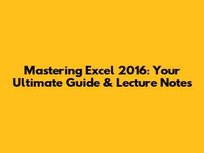 Mastering Excel 2016: Your Ultimate Guide & Lecture Notes