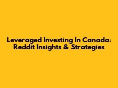 Leveraged Investing In Canada: Reddit Insights & Strategies