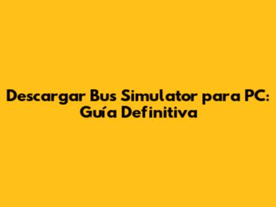 ¿Buscas descargar Bus Simulator para PC y convertirte en el rey de las carreteras urbanas? ¡Estás en el lugar correcto, amigos! En esta guía completa, te sumergiremos en el mundo de Bus Simulator, explorando todos los aspectos necesarios para que puedas disfrutar de este simulador de autobuses en tu computadora. Desde los requisitos del sistema hasta los mejores lugares para descargar el juego, pasando por consejos y trucos para dominar las calles, aquí encontrarás todo lo que necesitas saber. ¡Prepárense para conducir!