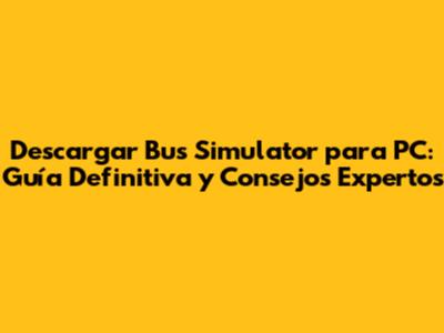 ¡Hola, gente! Si son fanáticos de los simuladores y les encanta la idea de ponerse al volante de un autobús, entonces están en el lugar correcto. En este artículo, les guiaré paso a paso sobre cómo descargar Bus Simulator para PC, les daré algunos consejos para optimizar el juego y les contaré todo lo que necesitan saber para disfrutar al máximo de esta experiencia. Prepárense para conducir por las calles virtuales, ¡porque esto se pone interesante!