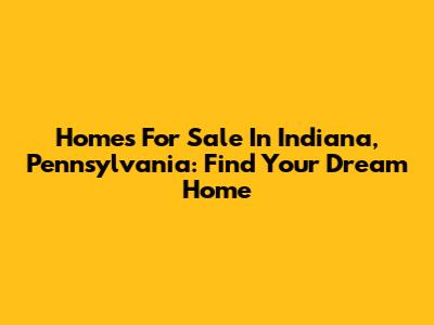 Homes For Sale In Indiana, Pennsylvania: Find Your Dream Home