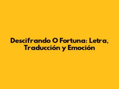 ¿Alguna vez te has sentido transportado por la música, sintiendo cómo una melodía te eriza la piel y te lleva a otro lugar? Si es así, es muy probable que hayas experimentado el poder de "O Fortuna", la pieza más icónica de Carmina Burana de Carl Orff. Esta obra maestra, con su ritmo inconfundible y su coro apasionado, es mucho más que una simple canción; es una experiencia, un viaje emocional que ha cautivado a audiencias de todo el mundo durante décadas. En este artículo, vamos a sumergirnos en el fascinante mundo de "O Fortuna", explorando su letra, su traducción al español, el contexto histórico y cultural que la rodea, y por qué sigue resonando con tanta fuerza en la actualidad. ¡Así que prepárense, amigos, para un viaje musical que seguramente les encantará!