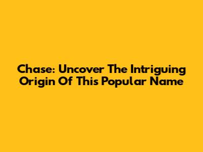 Chase: Uncover The Intriguing Origin Of This Popular Name