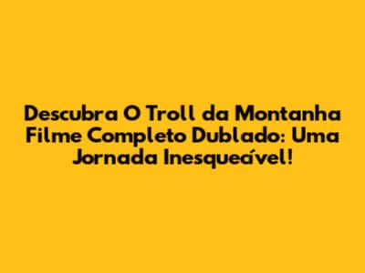 Olá, pessoal! Se vocês são fãs de filmes de aventura, fantasia e, claro, um bom dublado, preparem-se! Vamos mergulhar no mundo de "O Troll da Montanha" (Troll), uma produção que conquistou corações e mentes ao redor do globo. Neste artigo, vamos explorar tudo sobre o filme: desde a trama envolvente, passando pelo elenco talentoso e, claro, onde você pode assistir ao filme completo dublado. Então, preparem a pipoca e embarquem nessa aventura com a gente!