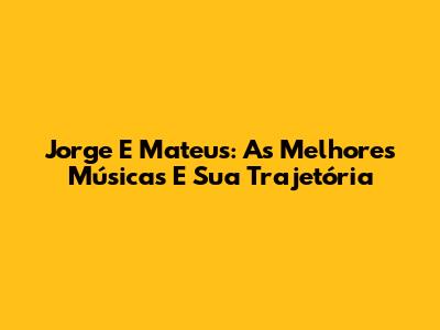 Jorge E Mateus: As Melhores Músicas E Sua Trajetória