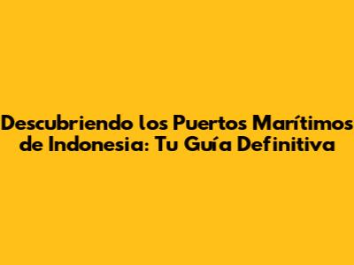 Los Puertos Más Importantes de Indonesia: Un Vistazo Detallado