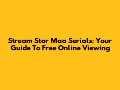 Stream Star Maa Serials: Your Guide To Free Online Viewing