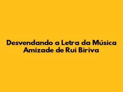 Desvendando A Letra Da Música Amizade De Rui Biriva