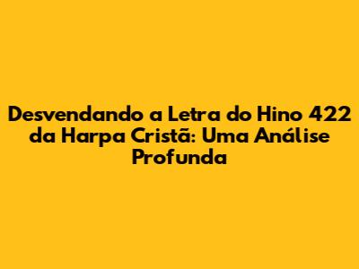 O hino 422 da Harpa Cristã é um tesouro de fé, esperança e amor. Sua mensagem atemporal continua a inspirar e fortalecer os crentes em todo o mundo. Ao meditarmos sobre a letra, cantarmos a melodia e aplicarmos seus ensinamentos em nossa vida diária, somos transformados e capacitados a viver uma vida mais plena e significativa. Que a mensagem do hino 422 continue a ressoar em nossos corações, guiando-nos em nossa jornada espiritual e nos aproximando cada vez mais de Deus.