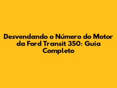Saber onde encontrar e entender o número do motor da sua Ford Transit 350 é essencial para garantir a manutenção adequada, a legalidade e a segurança do seu veículo. Com este guia completo, você está pronto para identificar o número do motor com facilidade e confiança. Lembre-se, o número do motor é mais do que apenas um conjunto de números e letras; é a chave para uma série de informações importantes sobre o seu veículo. Mantenha essa informação sempre à mão e consulte um profissional se precisar de ajuda adicional. Cuide bem da sua Ford Transit 350, e ela cuidará de você.