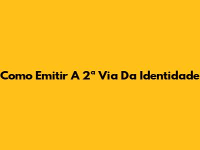 Como Emitir A 2ª Via Da Identidade