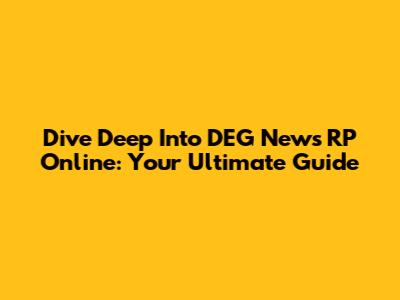 Dive Deep Into DEG News RP Online: Your Ultimate Guide