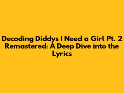 Hey everyone! Let's dive deep into the lyrics of Diddy's iconic track, "I Need a Girl Pt. 2" (2016 Remaster). This song, a cornerstone of early 2000s R&B and hip-hop, has resonated with fans for years. Understanding the nuances of the remastered lyrics allows us to appreciate the evolution of the track. We'll break down the meaning, the emotions, and the stories woven into the song's verses and chorus. The 2016 remaster brought a fresh polish to the sound, making the lyrics even more impactful.