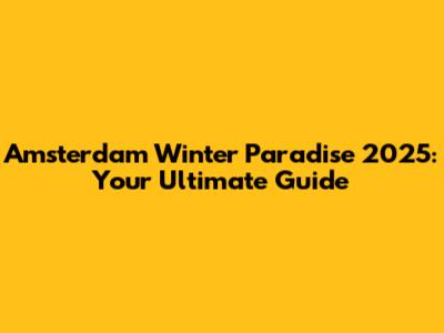 Amsterdam Winter Paradise 2025: Your Ultimate Guide