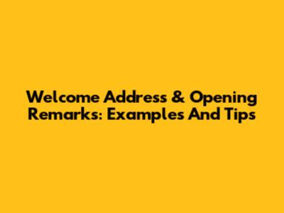 Welcome Address & Opening Remarks: Examples And Tips