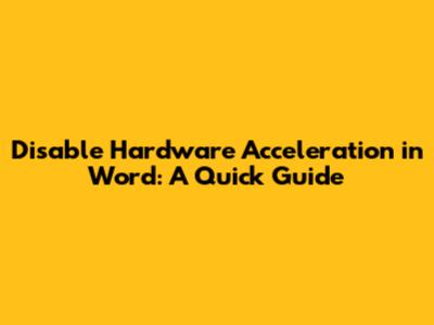Disable Hardware Acceleration In Word: A Quick Guide