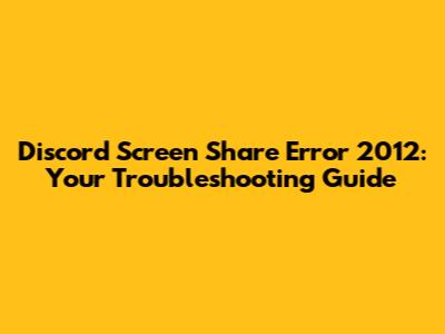 Hey guys! Ever been in the middle of an awesome gaming session or trying to share some cool stuff with your friends on Discord, and bam – hit with the dreaded Discord screen share error 2012? It's a real buzzkill, I know. But don't worry, you're not alone, and more importantly, there are some pretty straightforward fixes you can try. This guide is all about helping you understand what causes this pesky error and, more importantly, how to get rid of it so you can get back to sharing your screen like a pro. We'll cover everything from the basics to some more advanced troubleshooting steps, so grab a coffee (or your drink of choice), and let's dive in.
