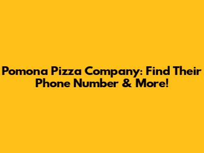 Pomona Pizza Company: Find Their Phone Number & More!