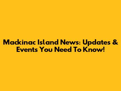 Mackinac Island News: Updates & Events You Need To Know!
