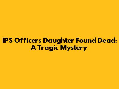 IPS Officer's Daughter Found Dead: A Tragic Mystery