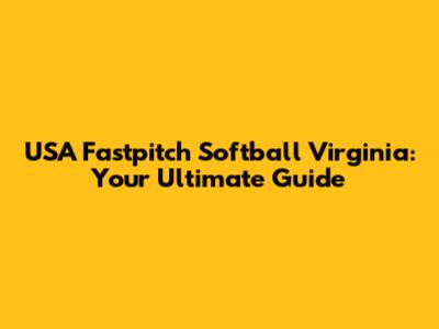 USA Fastpitch Softball Virginia: Your Ultimate Guide