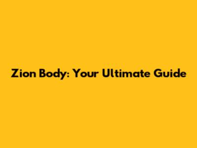 Zion Body: Your Ultimate Guide