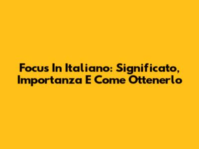 Focus In Italiano: Significato, Importanza E Come Ottenerlo