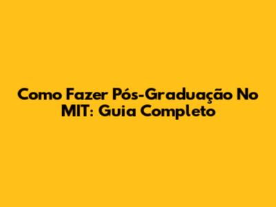 Como Fazer Pós-Graduação No MIT: Guia Completo