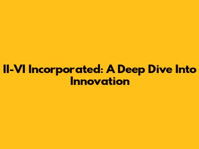 II-VI Incorporated: A Deep Dive Into Innovation