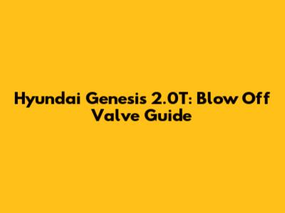 Hyundai Genesis 2.0T: Blow Off Valve Guide
