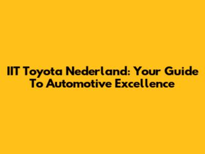 IIT Toyota Nederland: Your Guide To Automotive Excellence