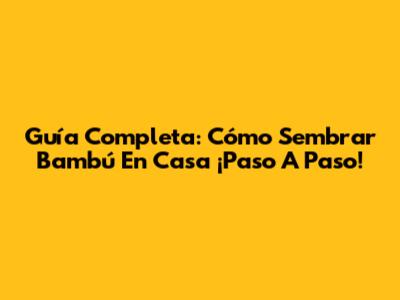 Guía Completa: Cómo Sembrar Bambú En Casa ¡Paso A Paso!