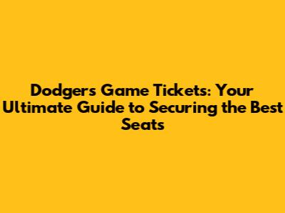 Unveiling the Best Ways to Snag Dodgers Tickets