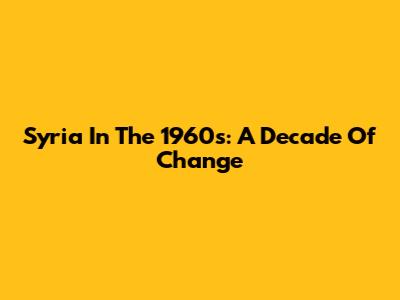 Syria In The 1960s: A Decade Of Change