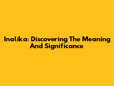 Inalika: Discovering The Meaning And Significance