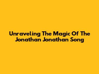 Unraveling The Magic Of The 'Jonathan Jonathan Song'